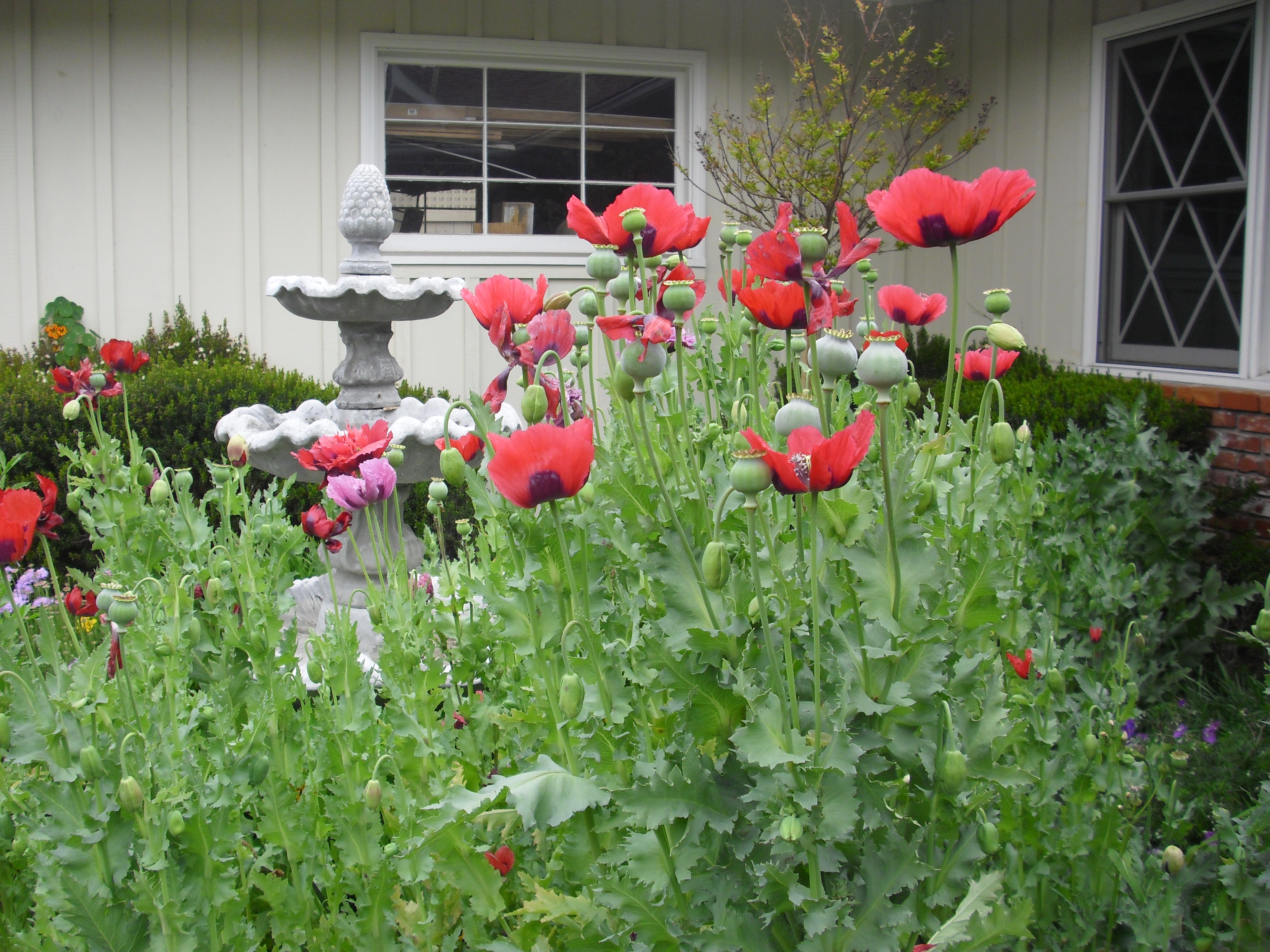 I always plant them in the empty strip along the front garden. One year I got a phone call from an elderly neighbor. She left me a message saying her gardener told her I was growing opium and I needed to pull them out before they sprouted all over the neighborhood or she would “call the police.”